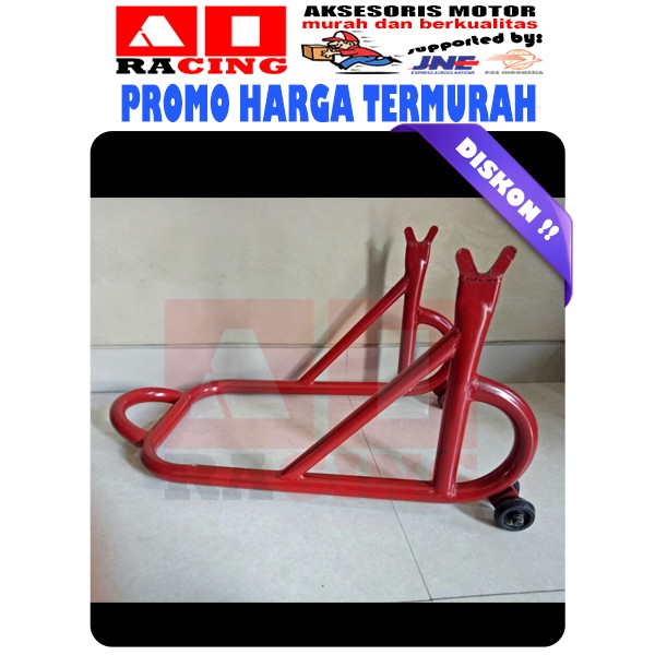 Pada kesempatan kali ini saya ingin mambahas jenis paddock motor. Terutama jika kalian akan menggunakan standar paddock dengan penopang model u. Olehkarena itu penggunaan paddock buat motor yang tidak ada standar tengahnya ini sangat diperlukan selain dari memudahkan untuk memutarkan roda katanya sih agar shock depan bebas beban dan menjaga keseimbangan. Paddock stand berfungsi untuk menegakan motor.